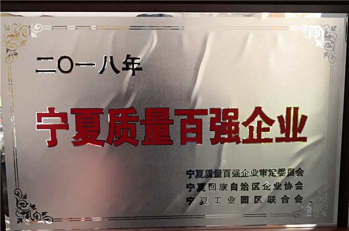 In 2018, it was rated as one of the top 100 quality enterprises in ningxia